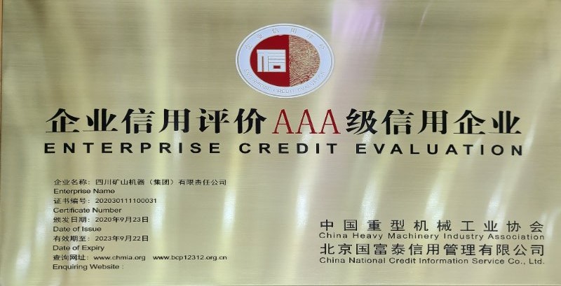 為深入貫徹落實國務院《社會信用體系建設規(guī)劃綱要(2014-2020)》,著力推動中國重型機械行業(yè)信用體系建設,規(guī)范行業(yè)市場秩序,增強企業(yè)信用意識,促進行業(yè)持續(xù)和諧健康發(fā)展,由中國重型機械工業(yè)協(xié)會開展的首批中國重型機械行業(yè)企業(yè)信用等級評價工作,經(jīng)行業(yè)專家評審會嚴格評審于日前揭曉,包括川礦集團在內(nèi)的共計49家企業(yè)榮膺“中國重型機械行業(yè)首批AAA級信用等級企業(yè)”,近日將進行隆重的授牌儀式。