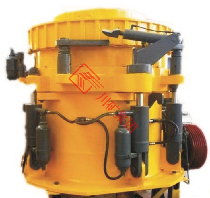 圓錐破碎機(jī)工作時(shí),電動(dòng)機(jī)通過(guò)彈性聯(lián)軸器、傳動(dòng)軸和一對(duì)錐齒輪帶動(dòng)偏心軸套轉(zhuǎn)動(dòng),破碎圓錐軸心線在偏心軸套的迫動(dòng)下做旋擺運(yùn)動(dòng),使破碎壁和軋臼壁時(shí)而靠近,時(shí)而遠(yuǎn)離,礦石在破碎腔內(nèi)不斷地受到擠壓、撞擊和彎曲而被破碎。